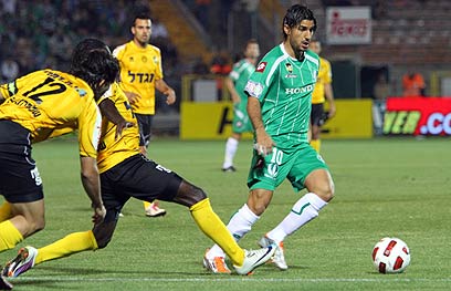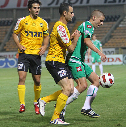 ליאור רפאלוב מחפש את הדרך לשער מכבי נתניה (צילום: חגי אהרון)
