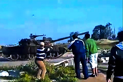 מפגינים בדרעא מסתתרים מטנק של הצבא