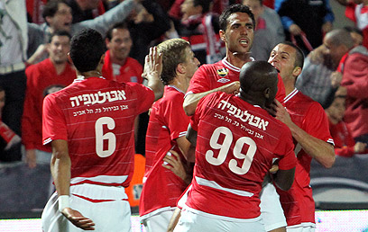 עוד שער מכריע לאוסף? זהבי, תמוז והפועל ת"א חוגגים (צילום: עוז מועלם)