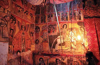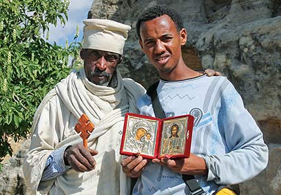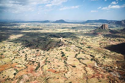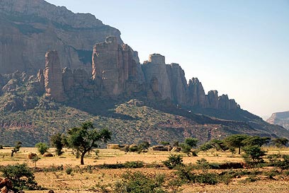 המתרוממים בבת אחת וכמעט במאונך מעל מישור הוזיאן. מן ההרים נגלים כמה מהנופים המרהיבים ביותר במחוז טיגרה. מדרונותיהם התלולים משתרעים על פני קילומטרים רבים, והכנסיות הממוקמות על פסגותיהם מבודדות ביותר. כדי להגיע אליהן, צריך לטפס תוך מאמץ באדמת טרשים ובשבילים שבקושי נראים לעין. לפיכך הייתי חייב להיות מלווה במדריך. הוא גם זה שמאתר את המחזיקים במפתחות של הכנסיות, וגם זה שמשוחח ומבקש את רשותם של הנזירים לבקר במקומות השונים.