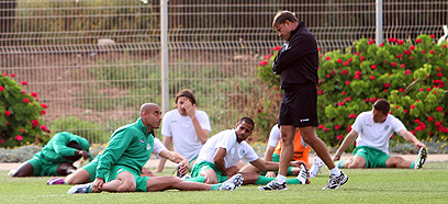 אלישע לוי ושחקני מכבי חיפה באימון (צילום: חגי אהרון)