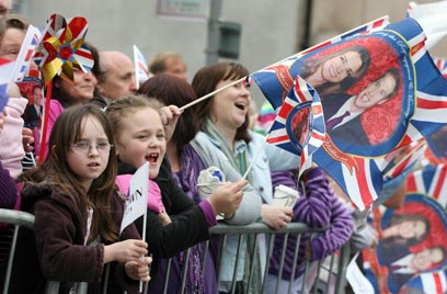 "תוכלו לקבל את ההזמנה של בי.בי.סי אמריקה לבוא ולצפות בחתונה על גבי מסך ענק בדאמבו". אזרחי הממלכה מצפים לזוג (צילום: אי.פי.איי)