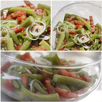 250 גרם במיה מבושלת כמו במתכון הקודם1 עגבנייה גדולה, בשלה ומוצקה, חתוכה לקוביות דקות וארוכות