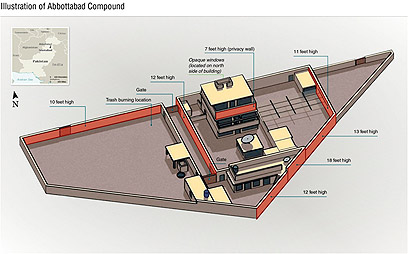 שרטוט המבנה שבו הסתתר אוסמה בן-לאדן (צילום: רויטרס)
