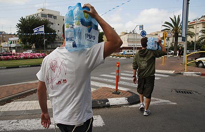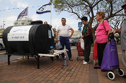 תושבי קריית מוצקין בנקודת חלוקת מים (צילום: אבישג שאר-ישוב)