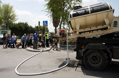 ישראל 2011.חלוקת מים בקריית מוצקין, אתמול (צילום: אבישג שאר-ישוב)