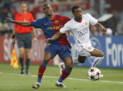 אטו ואברה ב-2009. הקמרוני כבר לא בבארסה, מי תנצח הפעם? (צילום: AP)