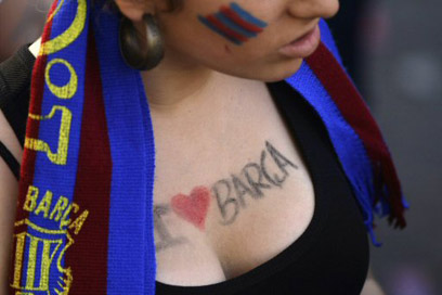 האוהדת הזו של ברצלונה תגיע גם לוומבלי? (צילום: רויטרס)