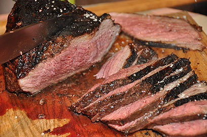 בינתיים, נינוחים, שבעי בשר וקצת שתויים, הסתכלנו על הכנרת ברקע, נותנים לרעש של בריכות המים לחדור למוחנו ושוב מתפעלים מהעגלים והפרות השלוות באחו. לבסוף הוצאתי את הנתח, נתתי לו לנוח מספר דקות ואז חשבתי שחבל לא לנצל את שליש בקבוק היין שנשאר על השולחן. החזרתי את הנתח לגריל, לצד עם האש החזקה יותר ובעדינות טפטפתי עליו מהיין המשובח. אחרי שהבוקרים הנידו בראשם לשלילה תוך זלזול נוסח "מה העירוני הזה עושה לבשר ואיך הוא מבזבז יין", פרסתי להם פרוסות דקות מהנתח והזלזול כמעט והפך למחיאות כפיים. תראה מה זה, אמרתי לחיים, מה אפשר לעשות מבשר אמיתי, טרי וטבעי.