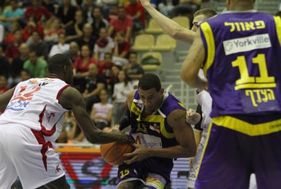 יובל נעימי משאיר את יאן מרטין מאחור בדרך לסל (אלי אלגרט)