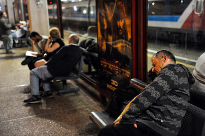 נרדמים על הפסים. נוסעים מיואשים בתחנת תל אביב-מרכז (צילום: בן קלמר)