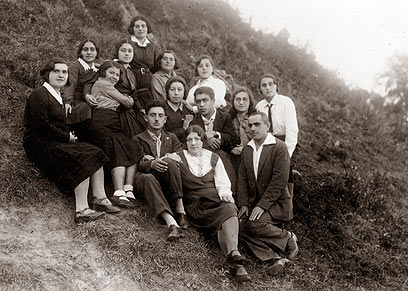 2. חורף בקן "השומר הלאומי" בווילייקה, 1932: מימין לשמאל: נחום נורמן, חיינה נורמן, אמי, בתיה קולבאק, צבי אלפירוביץ', פייגל נורמן, שורקה נורמן ובן דוד (חיינה, פייגל ושורקה נורמן הן דודניות של אמי). בתיה קולבאק, לימים בן ארי (אשת ראש עיריית בת ים).