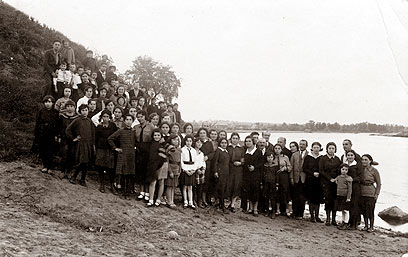 4. תמונת פרידה מלאה לפידות, ערב עלייתה לארץ ישראל - וילייקה, על גדות הנהר ניימן, ספטמבר 1932: חברים לתנועה ולביה"ס (אמי במרכז התמונה).