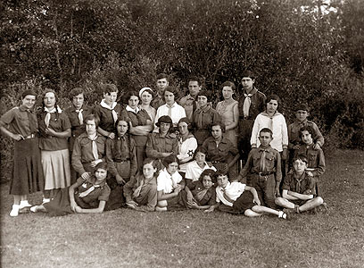 3. קבוצת "קדימה", קן "השומר הלאומי" וילייקה המחוזית 1932. למעלה - אמי. עוד בתמונה: לאה לפידות, רחל'ה גרינהויז, לאה שניוק, שרה הופשטיין, חיינה נורמן, בתיה קולבאק, וצבי אלפירוביץ'.