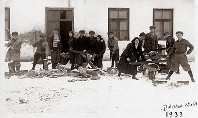 12. בהכשרת חורף באוסטרוב מאזובייצק, 1933, במנסרת עצים.