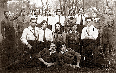 16. חברי קן השומר הלאומי ביוזפוב על הוויסלה בפולין 1929-30. 1- ראש הקן אבי, ישראל מלברגר, 2- שרה וסרמן, 3- דודתי חנה מלברגר הי"ד, 4- דודי אברהם מלברגר, 5- בן הדוד אברהם גבנדשניידר הי"ד , 6- מאיר לנגמן.