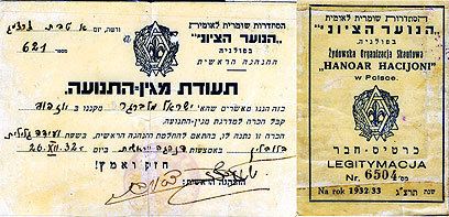 17. הסתדרות שומרית לאומית - הנוער הציוני בפולניה - "תעודת מגין התנועה" לראש הקן ביוזפוב על הוויסלה: אבי- ישראל מלברגר.