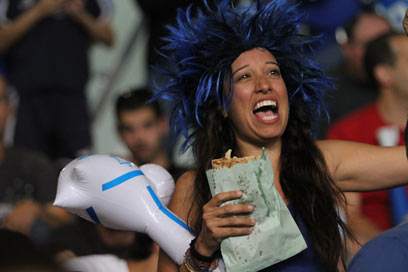 אוהדי מכבי ראשל"צ. הסדרה חוזרת לעיר היין (צילום: אורן אהרוני)