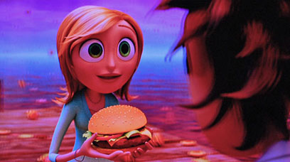 סצינת מבול ההמבורגרים בסרט "גשם של פלאפל" מוצגת בצורה יפה וצבעונית לעין. יש אפקט משכנע של תלת ממד והגשם עוטף את התמונה עם רבבות המבורגרים שנופלים במרחק קרוב או רחוק מהעין. בחלק מהעצמים שממוקמים קרוב יותר, ניתן לזהות כפילות בתמונה.
