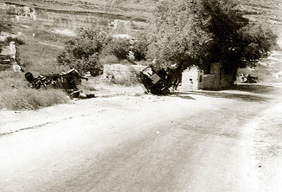 3. החאן ליד שער הגיא עם המשוריינים השרופים, עקבות יום האש.