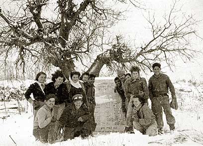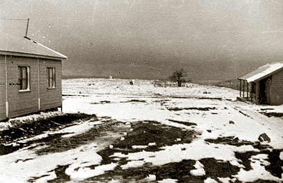 14. חורף מושלג במלכיה. ברקע גבעת גנדי, (הגבעה עם השיח). ליד השיח מצבה לנופלים בקרבות הקשים במלחמת העצמאות ליד מלכיה