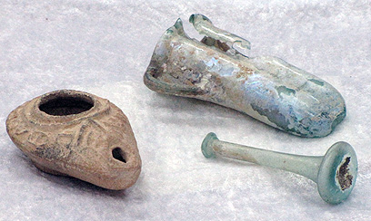 נרות חרס, מטבעות עתיקית וכלי זכוכית