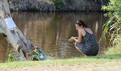 זרי פרחים ונרות במקום בו נמצאה גופתה של רוז (צילום: ג'ורג' גינסברג)