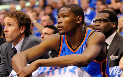 הג'רמינייטור דייק ב-80 אחוז מהשדה ולא החטיא מהעונשין (24 מ-24) כשהוא סוחף את המאבריקס ל-112:121 על אוקלהומה סיטי: "היה לי מזל שהזריקות הראשונות נכנסו". דוראנט (40 נק'): "אי אפשר לשלוח שחקן 24 פעמים לקו"