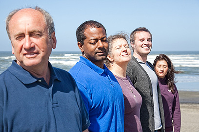 שניידר (משמאל) ומטופלים בביצוע תרגיל sunning (באדיבות מאיר שניידר)