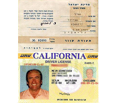 תעודת העיוור (למעלה) ורישיון הנהיגה של שניידר (באדיבות מאיר שניידר)