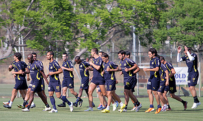 מכבי תל אביב באימון. בשבת מחכה מכבי נתניה (צילום: אורן אהרוני)