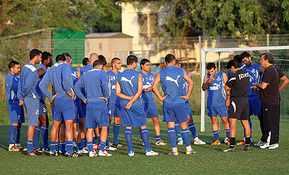 שחקני הפועל פתח תקווה, מתכוננים להפועל כפ"ס (צילום: אורן אהרוני)