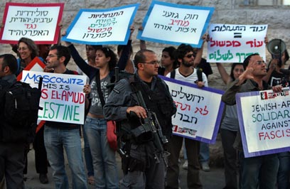 כאמור, ממש כשמטוסו של נתניהו נגע במסלול הנחיתה, התקיים הטקס בראס אל-עמוד. את הטקס במזרח ירושלים ליוותה הפגנה של כמה עשרות פלסטינים ופעילי שמאל ישראלים מתנועת סולידיות שייח ג'ארח. שניים מהמפגינים נעצרו כשניסו לחסום את הכביש. המפגינים קראו "אין קדושה בעיר כבושה" ו"מתנחל, חייל, קצין - צאו מיד מפלסטין". מתנועת סולידיות שייח ג'ארח נמסר בתגובה: "את נאומיו של ראש הממשלה מגבים יו"ר הכנסת וראש הערית ירושלים במעשים. חלוקת התנחלות פרובוקטיבית בליבה של ירושלים הפלשתינית מאששת את כוונת נתניהו לסכל כל אפשרות לדו קיום לשלום, באזור בכלל ובירושלים בפרט".