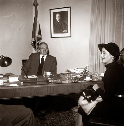 14. טדי קולק כמנהל משרד רה"מ דוד בן גוריון. קולק נבחר להיות ראש העיר ירושלים בשנת 1965 עמד בראשה 28 שנים ונחשב לגדול מפתחיה של העיר. בימי כהונתו עשה ככל יכולתו לקרב בין תושבי ירושלים מכל העמים והדתות.