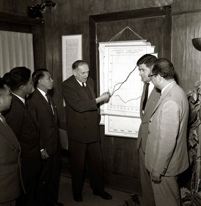 9. 5.1.1959, נגיד בנק ישראל, דוליק הורביץ, עם משלחת כלכלנים מקמבודיה.