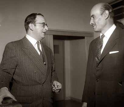 16. מר יצחק נבון עם שגריר בוליביה. נבון היה ראש לשכת שר החוץ משה שרת ורל"ש רוה"מ דוד בן גוריון. בשנים 1949-51 היה דיפלומט ישראלי באורוגוואי וארגנטינה, כך שסביר להניח שדיבר עם שגריר בוליביה (בתצלום) בשפתו.