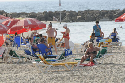 בקרוב, מישהו יסתכל עליכם מרחוק. רוחצים בחוף בת"א (צילום: דלית שחם)