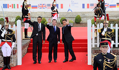 סרקוזי, מדבדב ואובמה בדוביל (צילום: EPA)