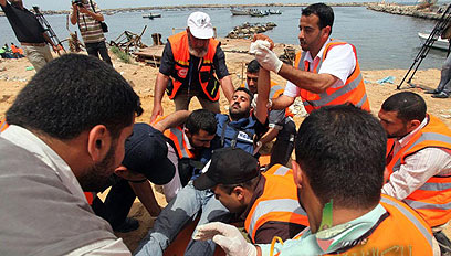 מחלצים פצוע שהושלך מספינה. תמרון חמאס