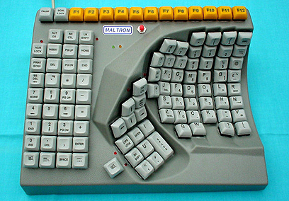 חברת מלטרון הבריטית מייצרת מקלדות ארגונומיות מיוחדות רבות. אחת מהן נראית כמו מכונת כתיבה שישב עליה בן אדם ובאורח פלא נוצרה מקלדת ארגונומית שתוכננה לשימוש ביד אחת בלבד. לפי החברה, כל המקשים סודרו בצורה כזו שיהיה נוח לגשת לכולם לפי שכיחותן בשפה. בבדיקות שערכו בחברה אנשים הצליחו להגיע למהירות הקלדה של 85 מילים בדקה, שזו מהירות של קלדן מקצועי. העיצוב המוזר של המקלדת אמור להאיץ את מהירות ההקלדה גם אצל משתמשים ביתיים ולמנוע כאבים ביד מהקלדה ממושכת. למקלדת יש גם דגם לשמאליים.