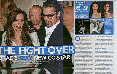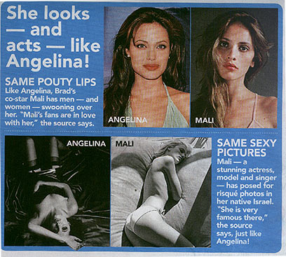 המגזין מפרסם מקורב לבני הזוג שמספר כי "אנג'לינה חיה בפחד מתמיד שבראד ינהל רומן עם אישה אחרת על סט סרט שלו, כמו שהוא עשה איתה כשהיה נשוי לג'ניפר אניסטון". עוד הוסיף המקורב: "מלי היממה אותו. היא סמל סקס בישראל ואנשים אוהבים אותה. היא נשואה לכוכב הכדורגל שמעון גרשון. היא מאוד אתלטית והיא סמל סקס. ברור שהיא מהווה איום על אנג'לינה".