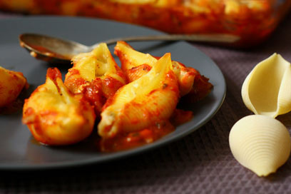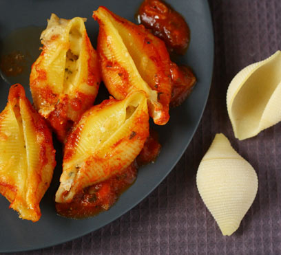 פסטה קונכיות במילוי גבינות ברוטב עגבניות אורגנו ושום