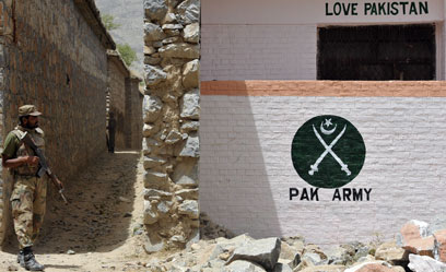 חייל מאבטח בית ספר בזמן סיור עיתונאים באזור השבטי בפקיסטן (AFP)