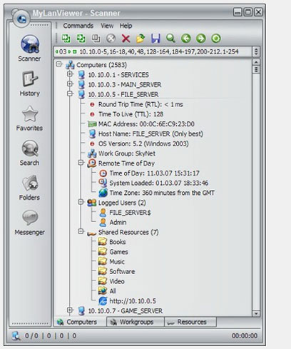 עקרונית, ניתן לבדוק מי דרדס לעצמו האלחוטי על חשבונך דרך מערכת ההפעלה, אבל הדרך המהירה והפשוטה ביותר היא להוריד תוכנה לסריקת ה-IP, כמו MyLanViewer למשל. לאחר שתוריד ותתקין אותה, לחץ על כפתור הסורק (Scanner) שיבצע סקירה ובסיומה יופיע כל המחשבים שמחוברים לרשת שלכם.