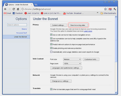 3. לחץ על נקה היסטוריית גלישה או Clear browsing history