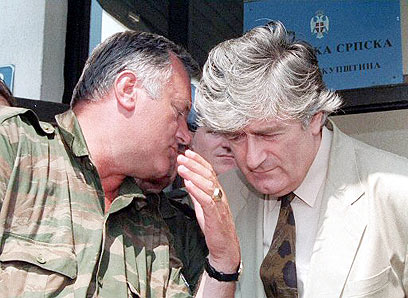 קרדז'יץ ומלאדיץ' בשיא המלחמה בבוסניה, 1993 (צילום ארכיון: AFP)