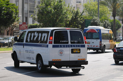 אמבולנס מחוץ לביתו של עופר, הבוקר (צילום: ירון ברנר)