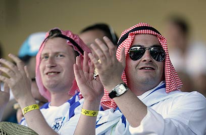 חוגגים פורים בריגה. גם האוהדים הללו שמחו ב-1:2 (צילום: רויטרס)