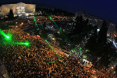 סטודנטים, גמלאים, זוגות צעירים ומהגרים הגיעו להפגנה הגדולה ב-12 ההפגנות הליליות האחרונות מול הפרלמנט באתונה. המפגינים מוחים נגד הגזירות הכלכליות. "במקום לרדוף את המשתמטים ממס, הם מעלים מסים ומקצצים בשכר העובדים"