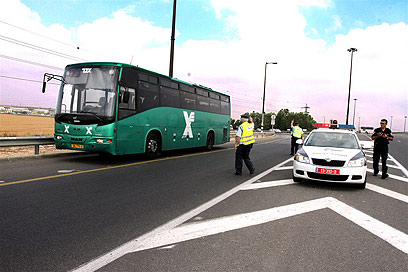שוטרים והאוטובוס בשחזור (צילום: עופר עמרם)